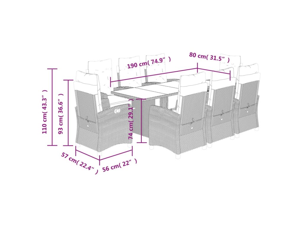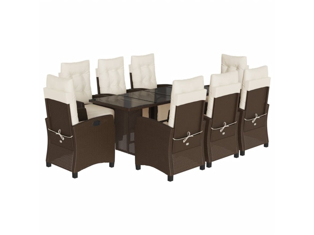9dílný zahradní jídelní set s poduškami hnědý polyratan 3212923
