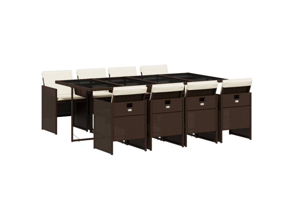 9dílný zahradní jídelní set s poduškami hnědý polyratan 3277688