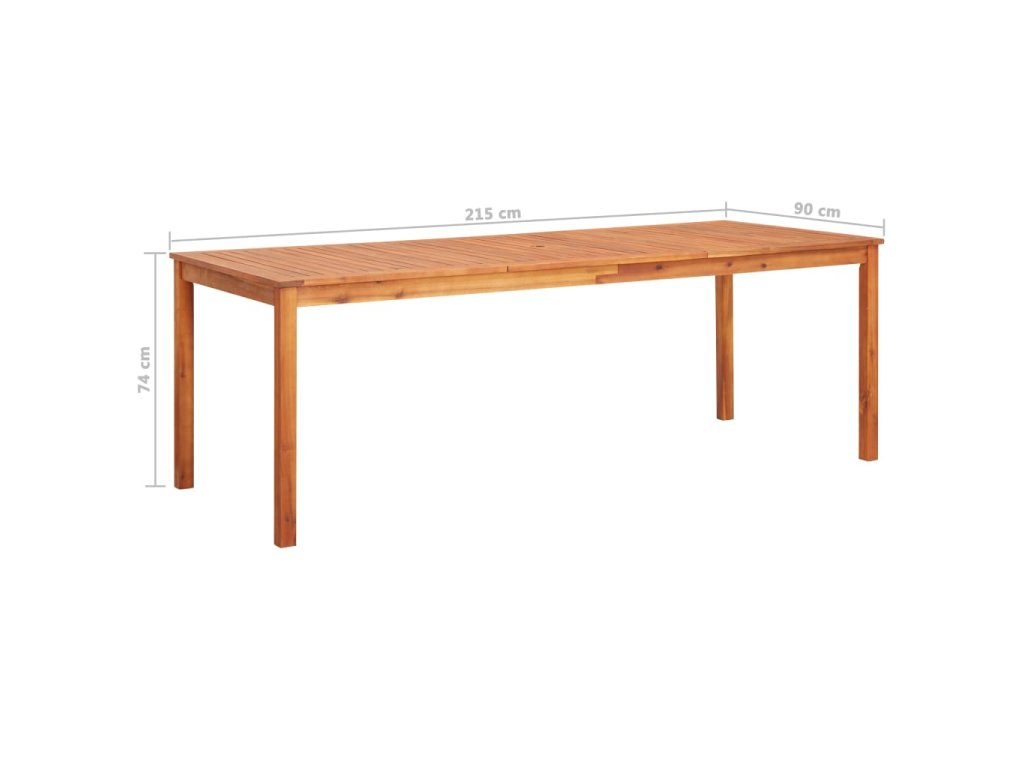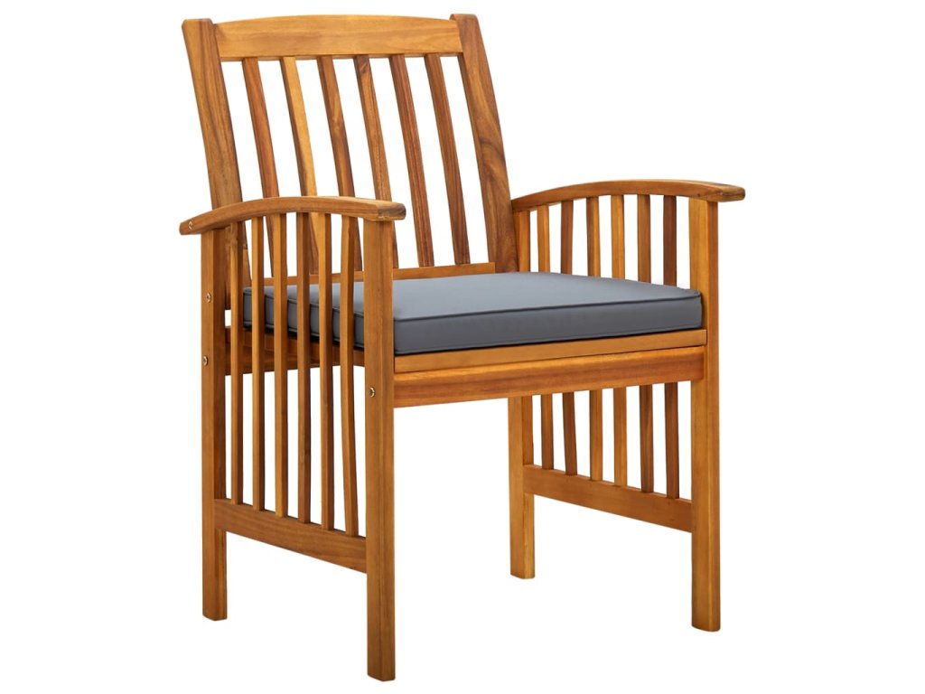 Jídelní stůl je vyrobený z masivního akáciového dřeva, tvrdého dřeva s hustou strukturou, takže je robustní, odolný a snadno se udržuje. Na dřevěnou stolní desku můžete prostřít k jídlu, servírovat nápoje a odkládat si celou řadu věcí. Dřevěné rámy židlí jsou ošetřené olejem a na vaši terasu nebo dvorek vnesou klasický vzhled a vaše venkovní bydlení oživí svým přírodním šarmem. Hustě polstrované podušky vám poskytnou dodatečné pohodlí při sezení a relaxaci. Tuto sestavu zahradního nábytku můžete snadno očistit vlhkým hadříkem.