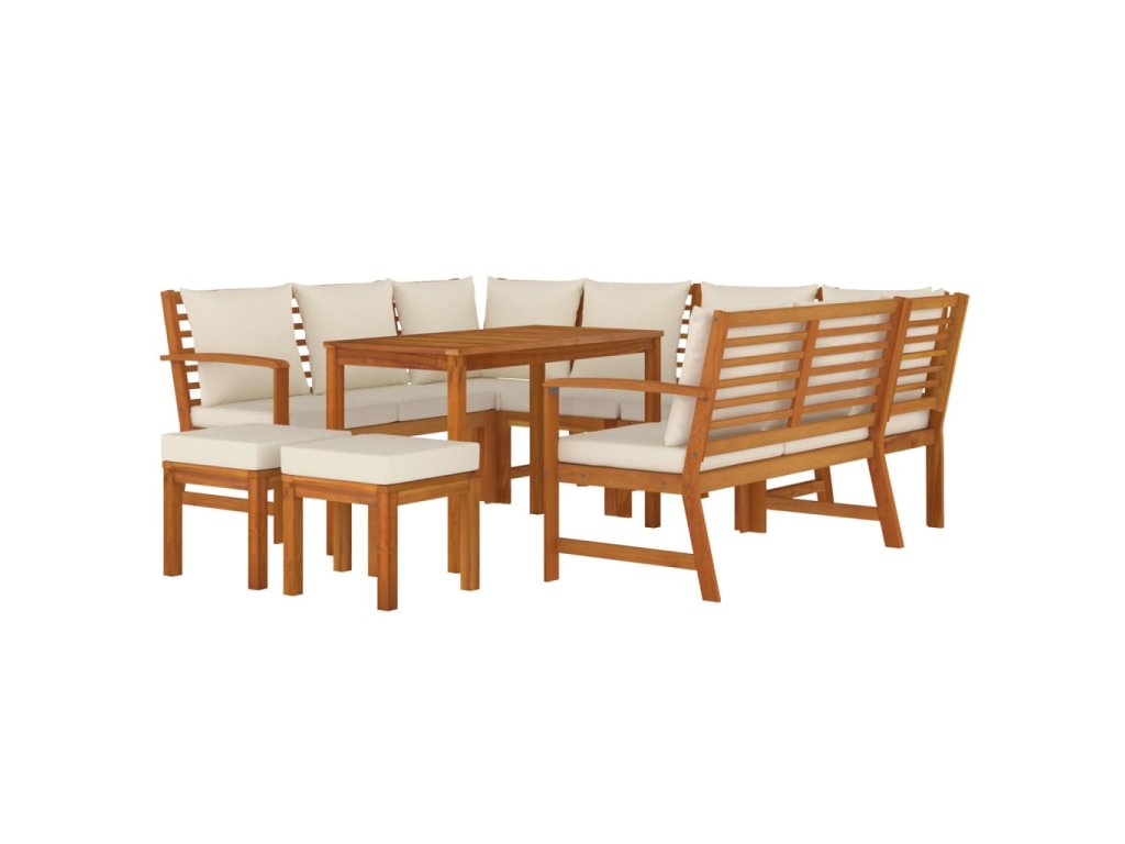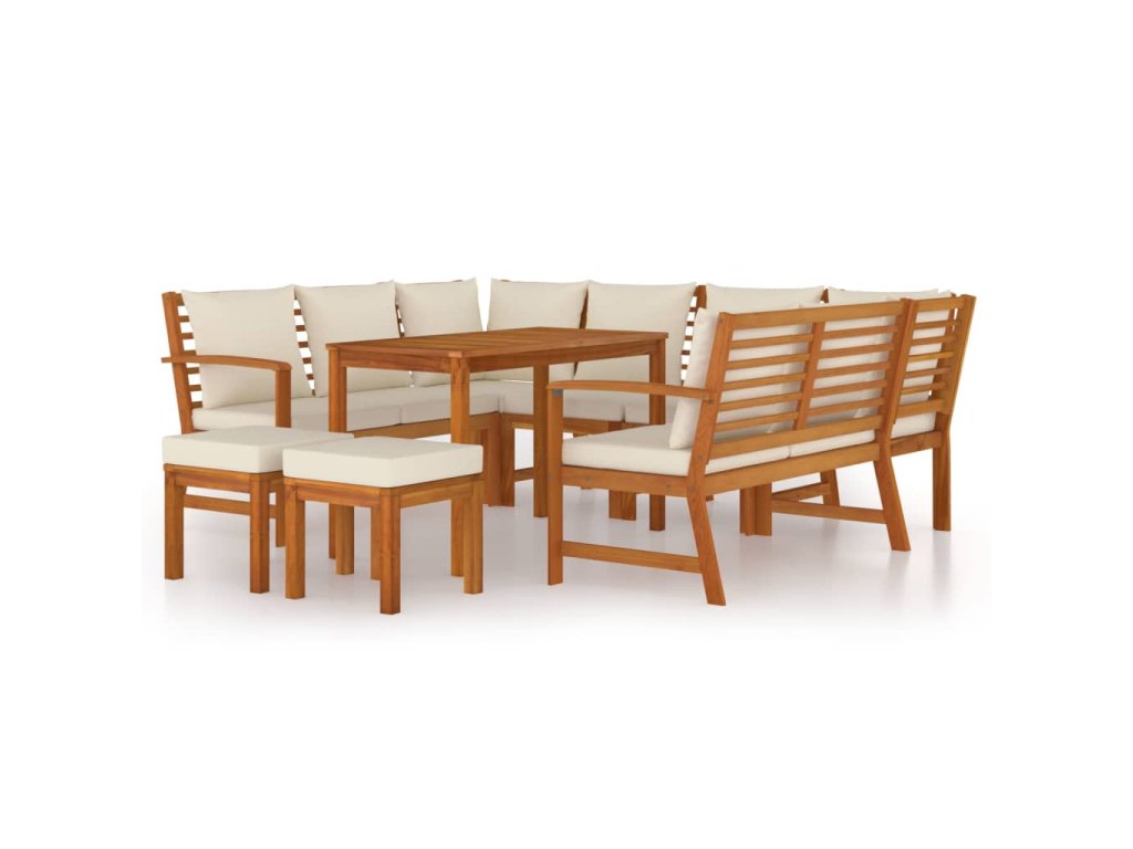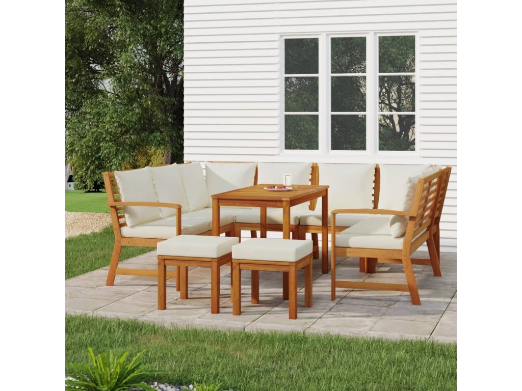 9dílný zahradní jídelní set s poduškami masivní akáciové dřevo 3154976