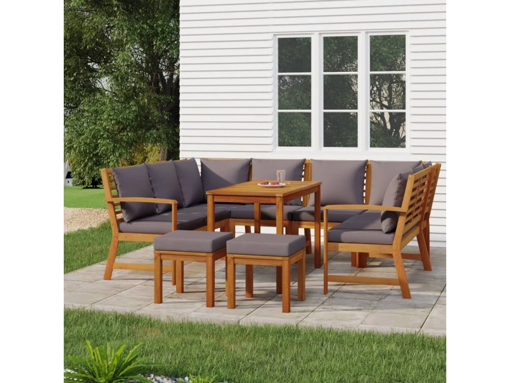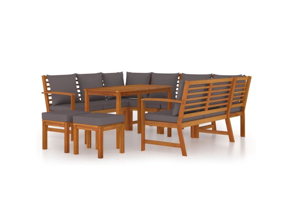 9dílný zahradní jídelní set s poduškami masivní akáciové dřevo 3154977