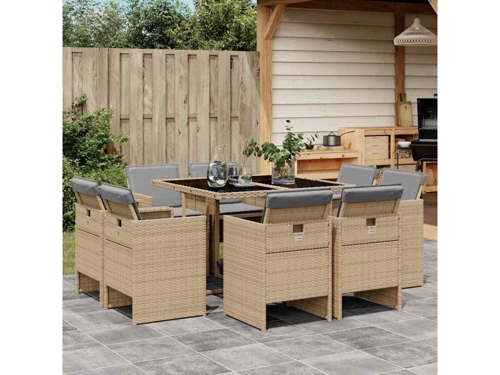 9dílný zahradní jídelní set s poduškami mix béžové polyratan 3210600