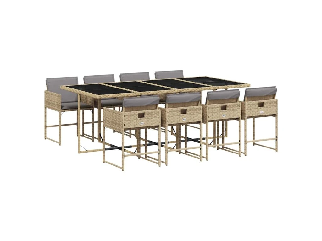 9dílný zahradní jídelní set s poduškami mix béžové polyratan 3211284