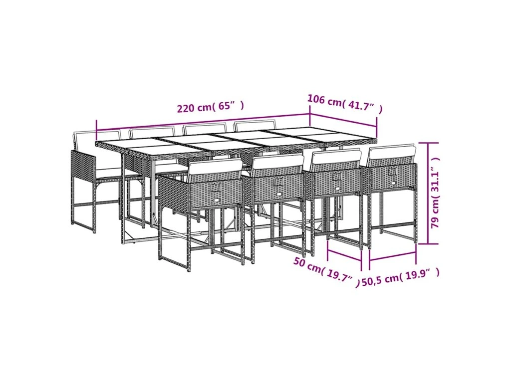 Tento zahradní jídelní set je skvělou volbou pro stolování pod širým nebem nebo jen tak pro odpočívání na zahradě, dvorku či terase.