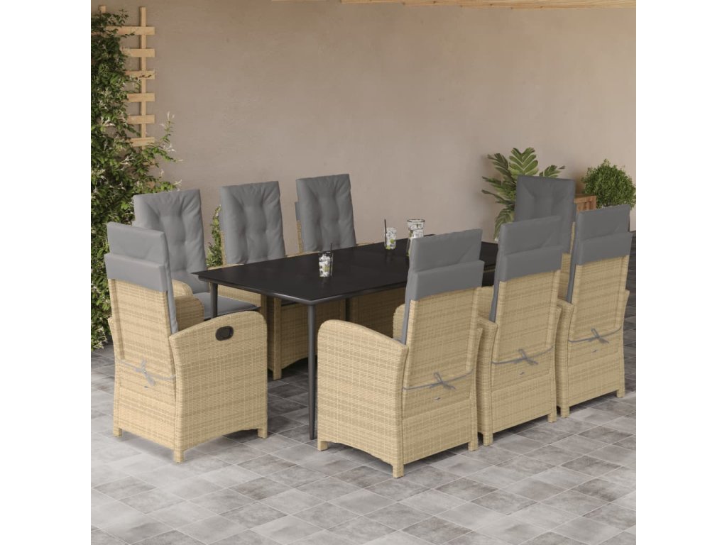 9dílný zahradní jídelní set s poduškami mix béžové polyratan 3212398
