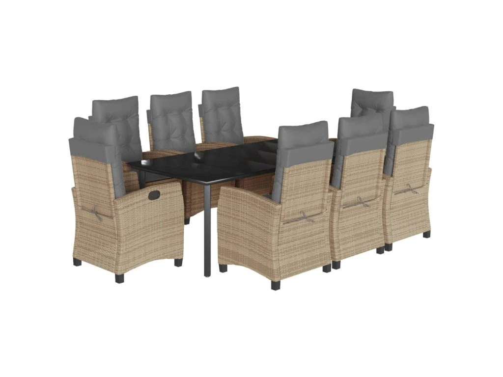 9dílný zahradní jídelní set s poduškami mix béžové polyratan 3212841