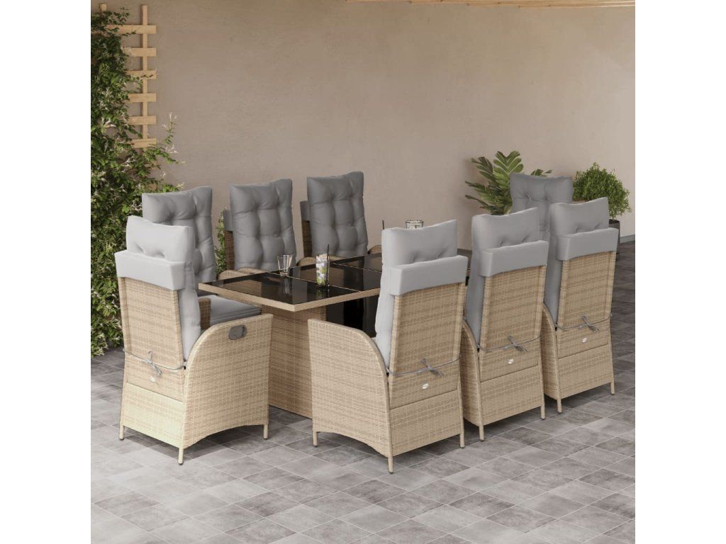 9dílný zahradní jídelní set s poduškami mix béžové polyratan 3213361