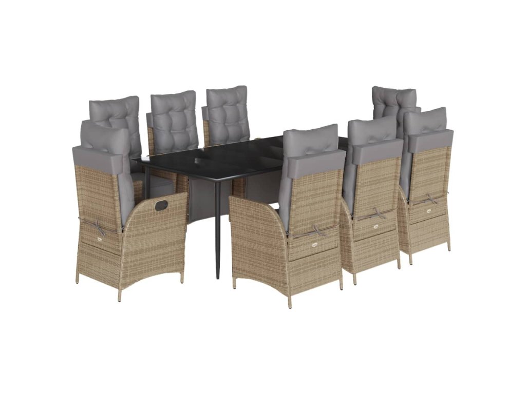 9dílný zahradní jídelní set s poduškami mix béžové polyratan 3213454