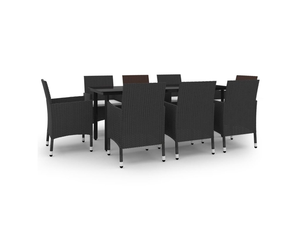 9dílný zahradní jídelní set s poduškami polyratan a sklo 3099684