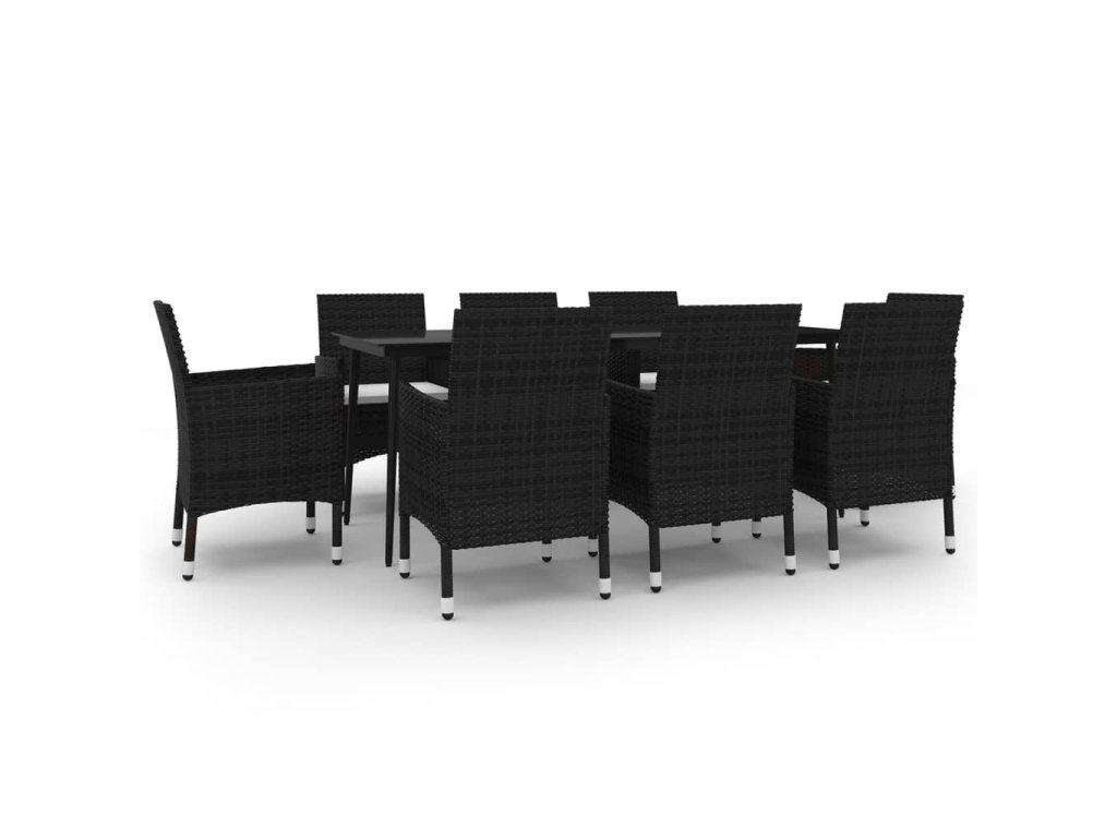 9dílný zahradní jídelní set s poduškami polyratan a sklo 3099732