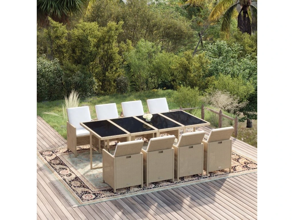 9dílný zahradní jídelní set s poduškami polyratan béžový 3095569