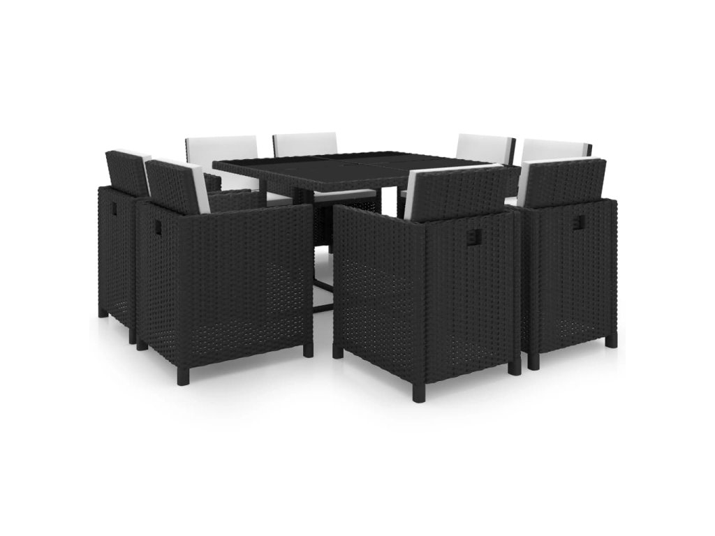 9dílný zahradní jídelní set s poduškami polyratan černý 42543