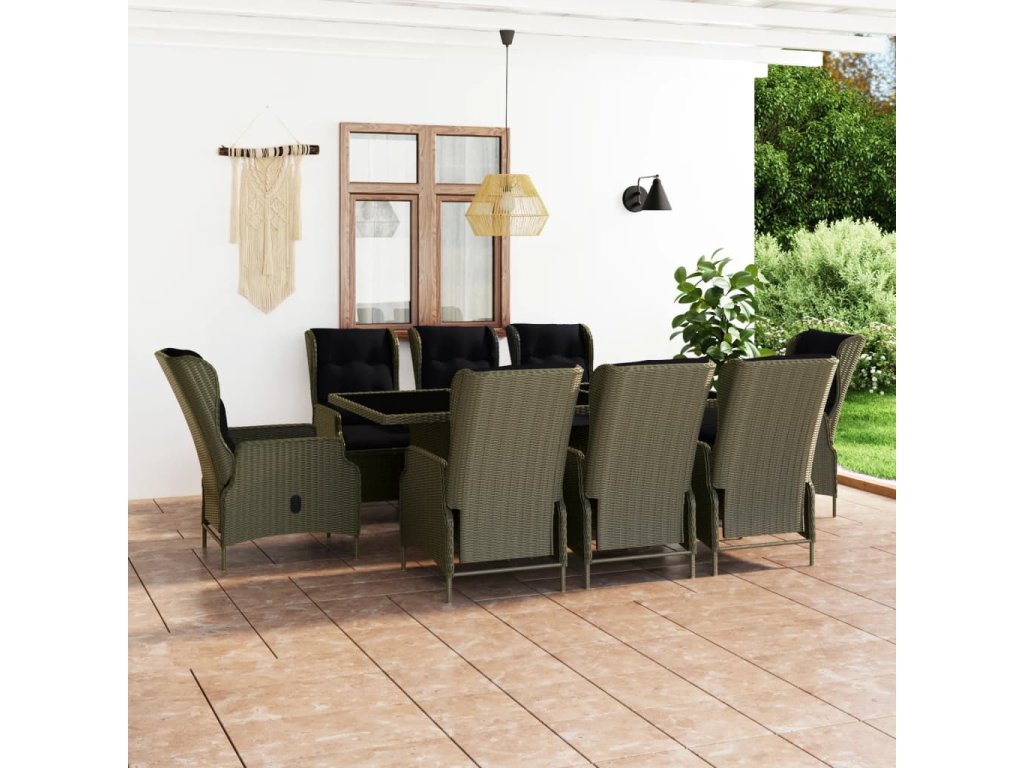 9dílný zahradní jídelní set s poduškami polyratan hnědý 3060146