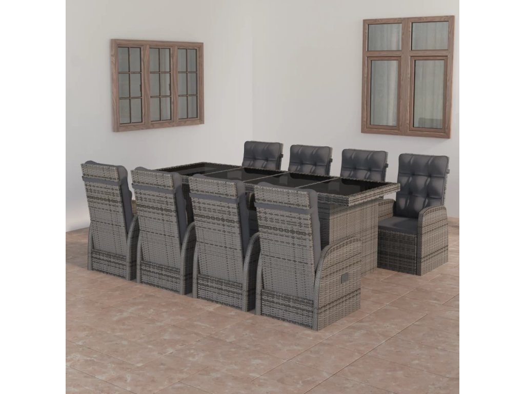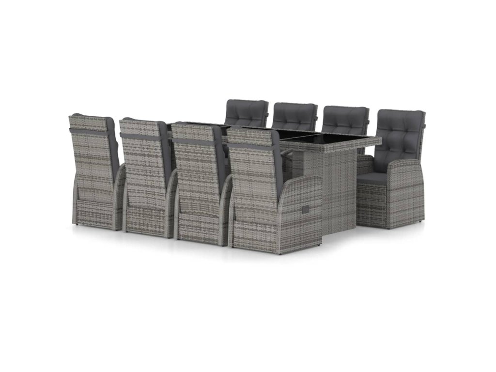 9dílný zahradní jídelní set s poduškami polyratan šedý 3059340