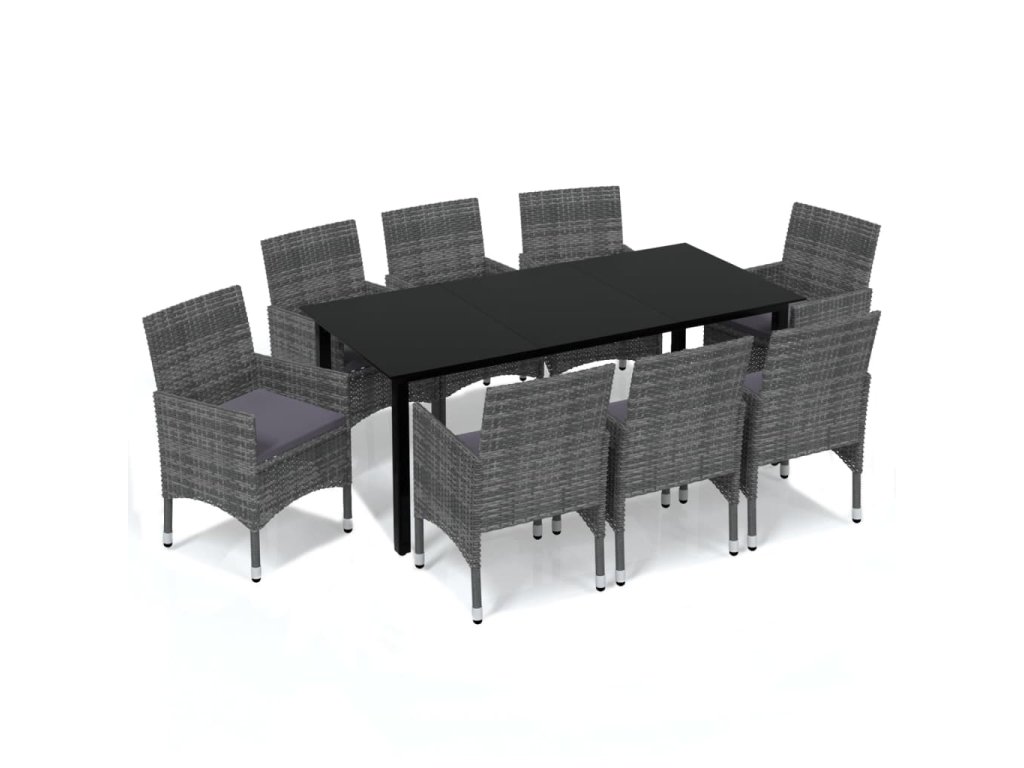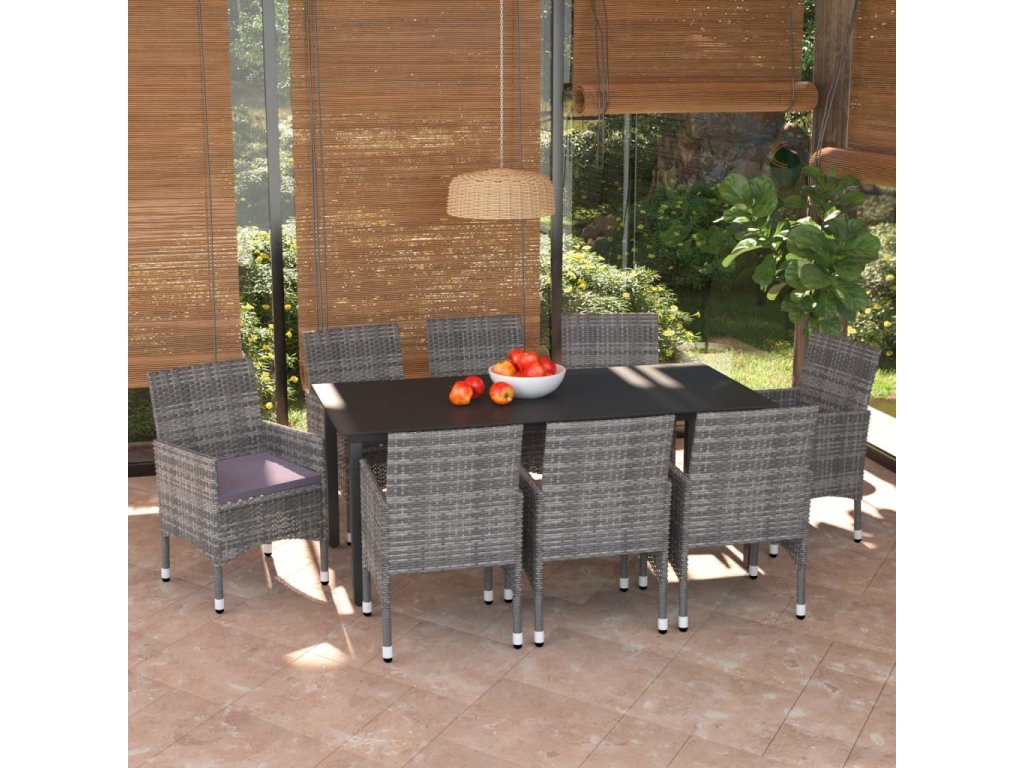 9dílný zahradní jídelní set s poduškami polyratan šedý 3094984