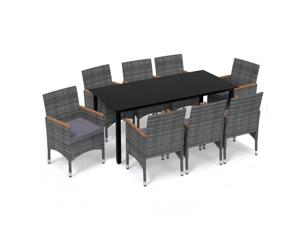 9dílný zahradní jídelní set s poduškami polyratan šedý 3095008