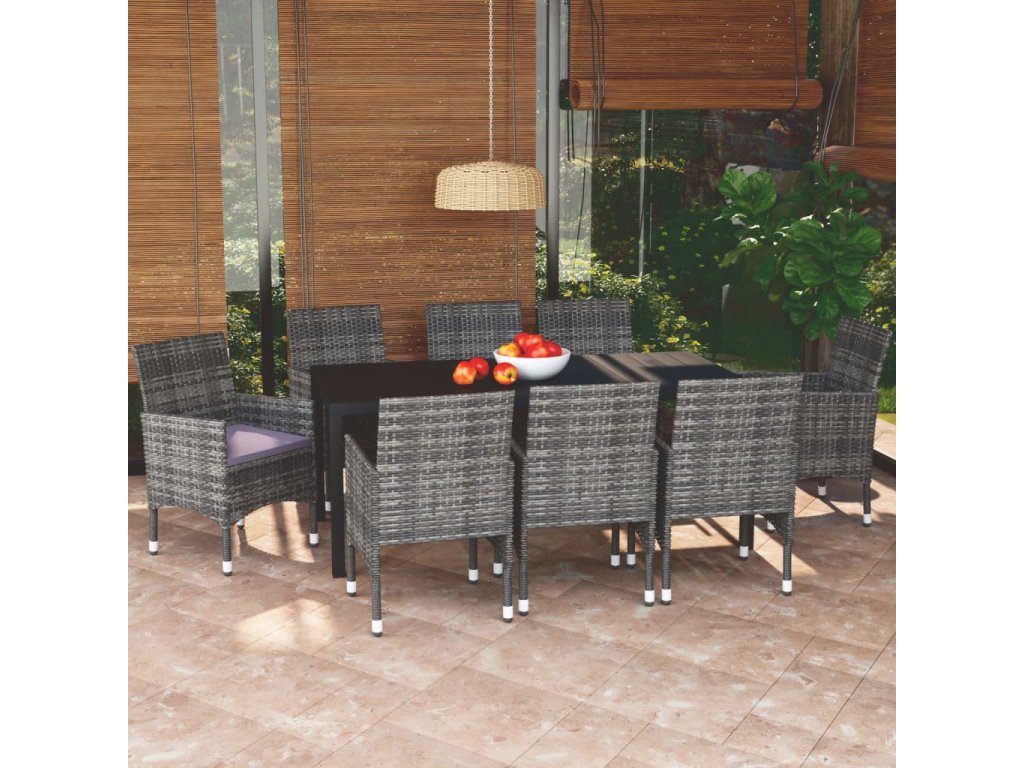 9dílný zahradní jídelní set s poduškami polyratan šedý 3095026