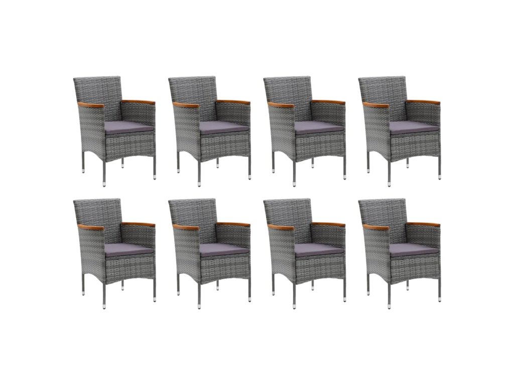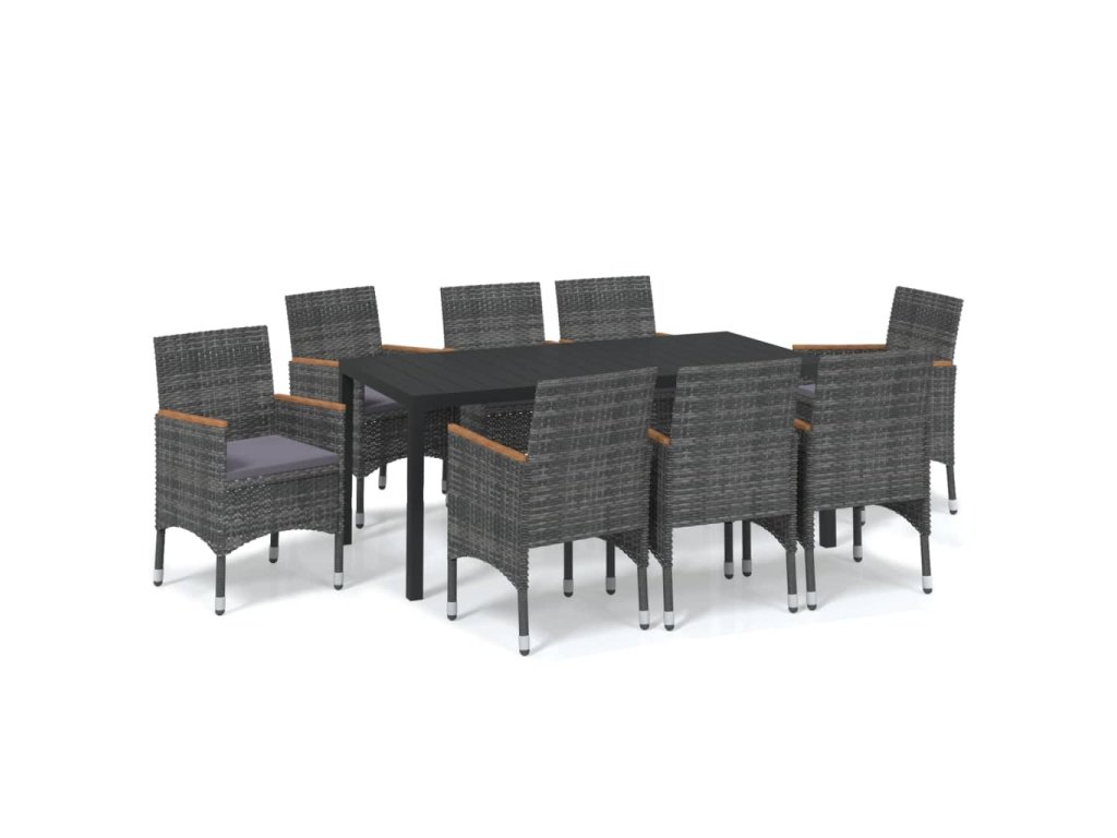 9dílný zahradní jídelní set s poduškami polyratan šedý 3095032