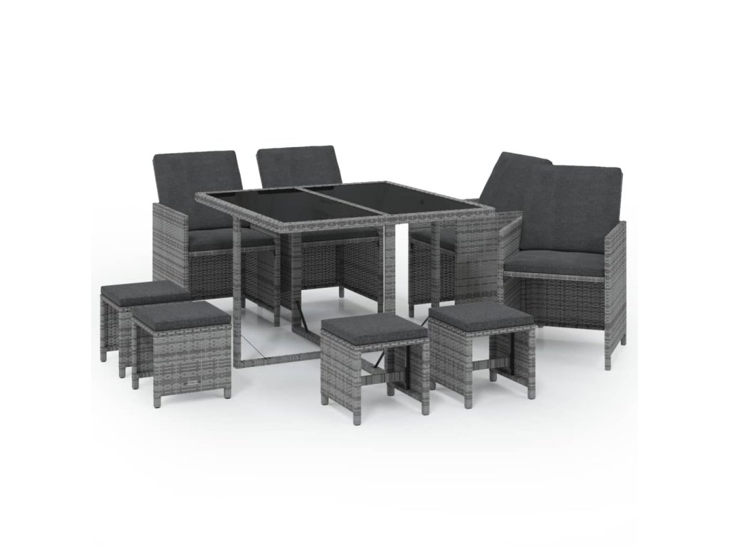 9dílný zahradní jídelní set s poduškami polyratan šedý 3095511