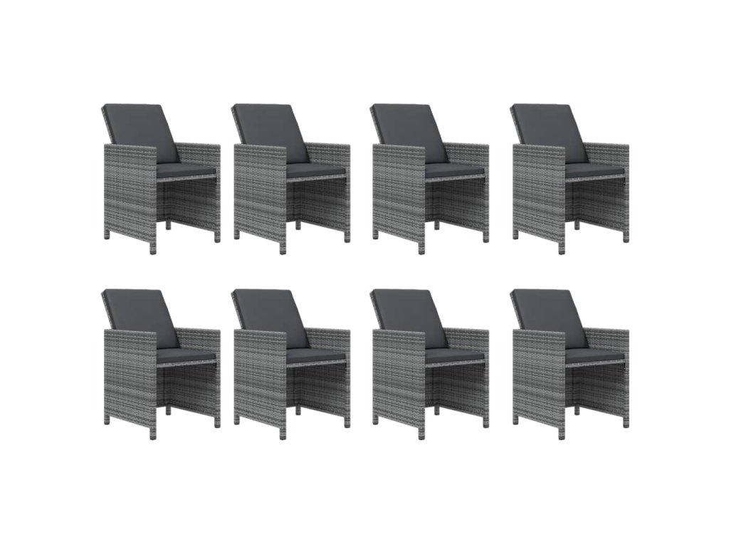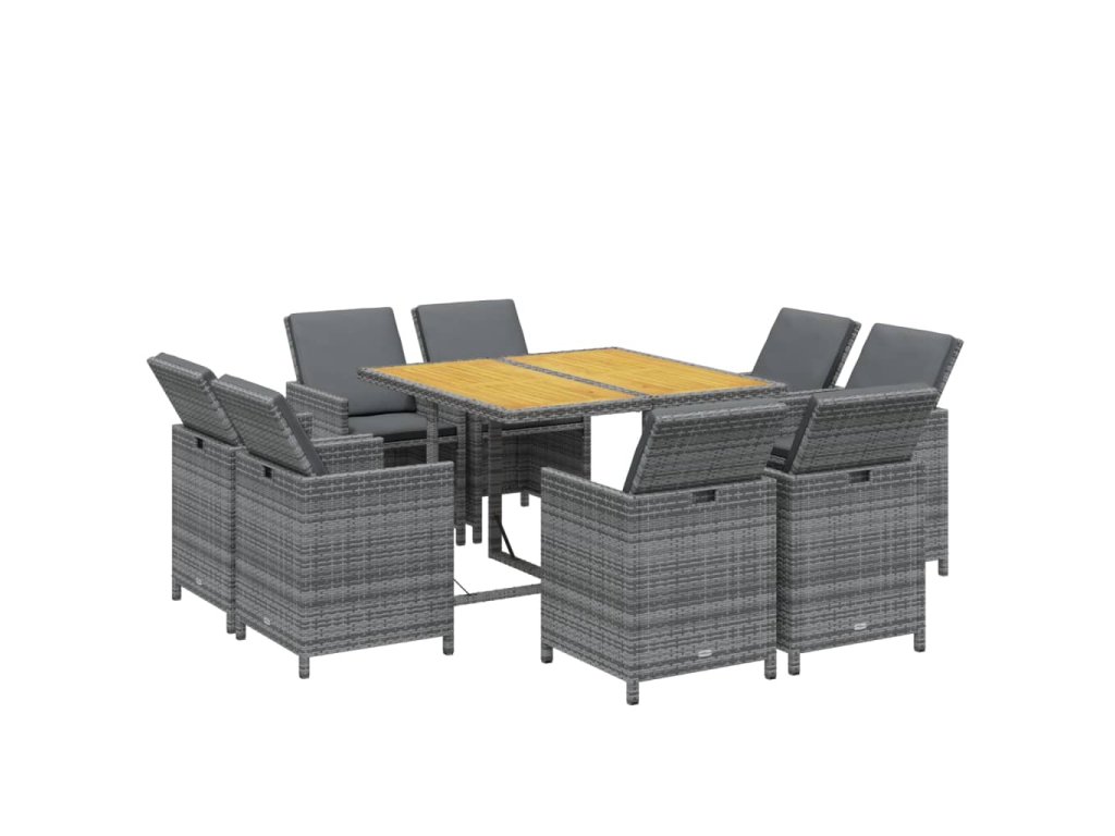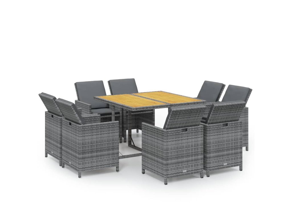 9dílný zahradní jídelní set s poduškami polyratan šedý 3095525