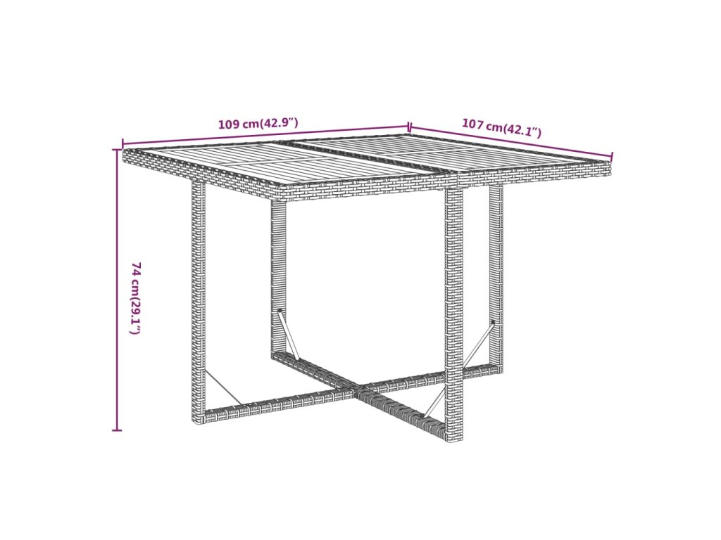 - Rozměry stolu: 109 x 107 x 74 cm (D x Š x V)