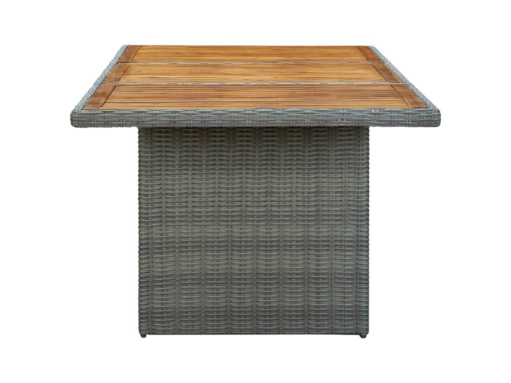 - Materiál: kulatý PE ratan, práškově lakovaná ocel, masivní akáciové dřevo s olejovaným povrchem