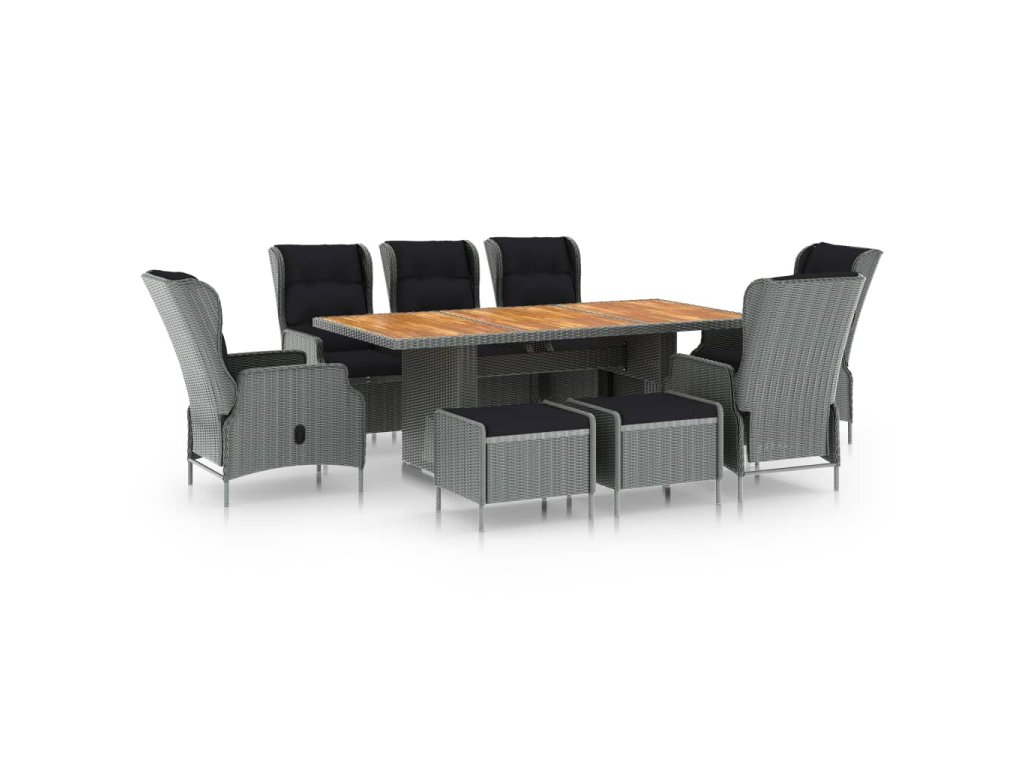 9dílný zahradní jídelní set s poduškami polyratan světle šedý 3060160