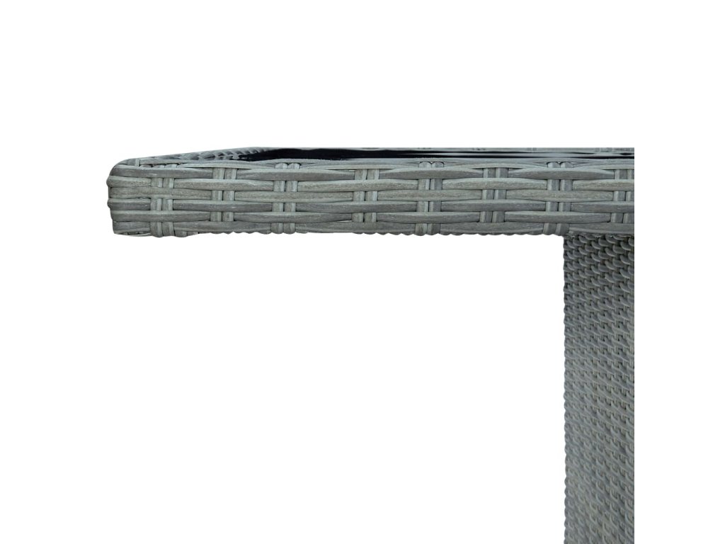 - Materiál: kulatý PE ratan, masivní akáciové dřevo, práškově lakovaná ocel, tvrzené sklo