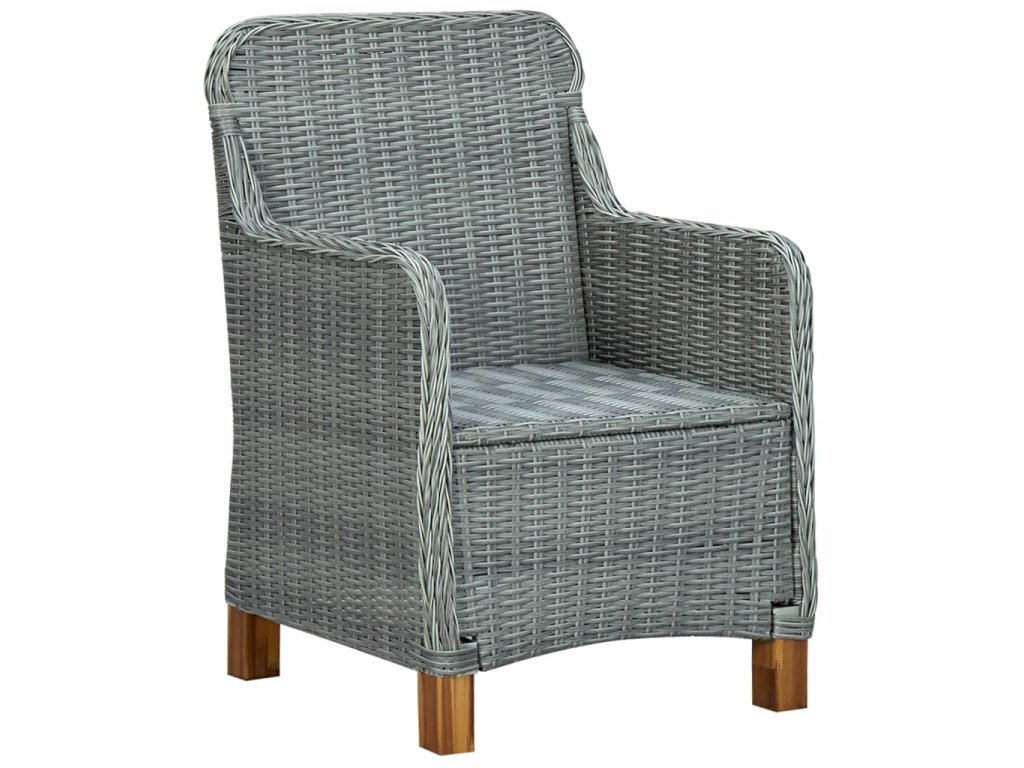 Zahradní nábytek je vyrobený z kulatého PE ratanu, který nevyžaduje téměř žádnou údržbu a snadno se čistí vlhkým hadříkem. Skvěle se proto hodí pro venkovní použití. Křesla i stůl mají rám z práškově lakované oceli, což jim zajišťuje výtečnou stabilitu a odolnost. Robustní stolní deska vám výborně poslouží k odkládání nebo vystavení nejrůznějších věcí. Hustě polstrované podušky vám při odpočinku poskytnou maximální pohodlí. Jejich potahy jsou opatřené zipem, aby se vám lépe stahovaly a praly. Nohy z masivního akáciového dřeva židlím dodávají na pevnosti a lepší rovnováze. Nábytek má lehkou konstrukci, takže ho můžete bez námahy přesouvat.