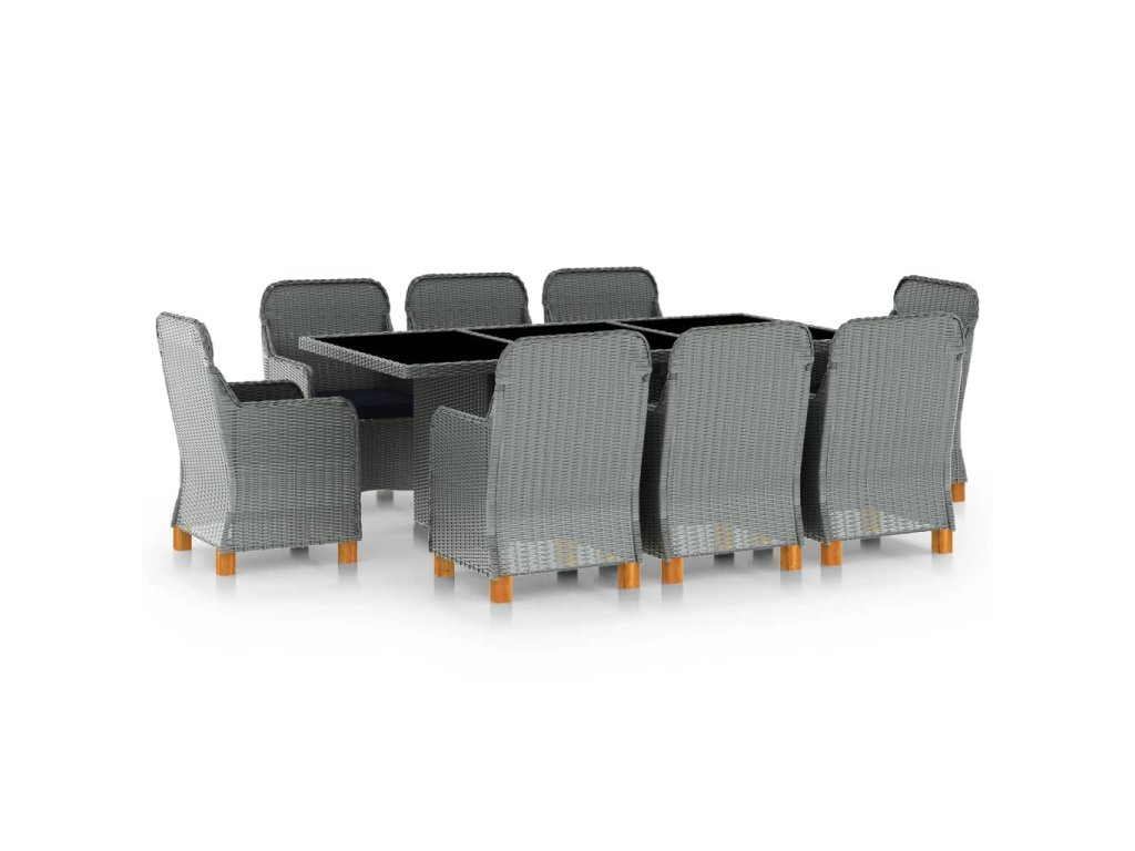 9dílný zahradní jídelní set s poduškami polyratan světle šedý 3060175