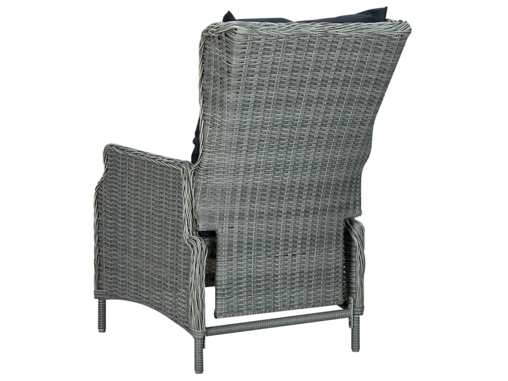 Zahradní nábytek je vyrobený z lehkého kulatého PE ratanu, který nevyžaduje téměř žádnou údržbu a snadno se čistí vlhkým hadříkem. Skvěle se proto hodí pro venkovní použití. Židle i stůl mají rám z práškově lakované oceli, což jim zajišťuje výtečnou stabilitu a odolnost. Stolní deska z masivního dřeva je ideální k podávání večeře nebo k vystavení dekorativních předmětů. Hustě polstrované podušky vám při odpočinku poskytnou maximální pohodlí. Jejich potahy jsou opatřené zipem, takže je můžete snadno sejmout a vyprat. Mechanismus s plynovým pístem umožňuje nastavit opěradlo polohovací židle do různých pozic. Stisknutím bočního tlačítka můžete opěradlo sklopit a příjemně se natáhnout.