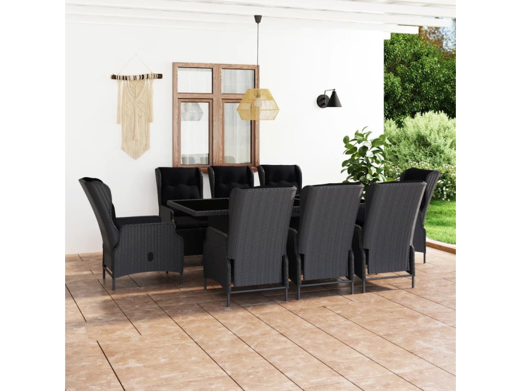 9dílný zahradní jídelní set s poduškami polyratan tmavě šedý 3060138