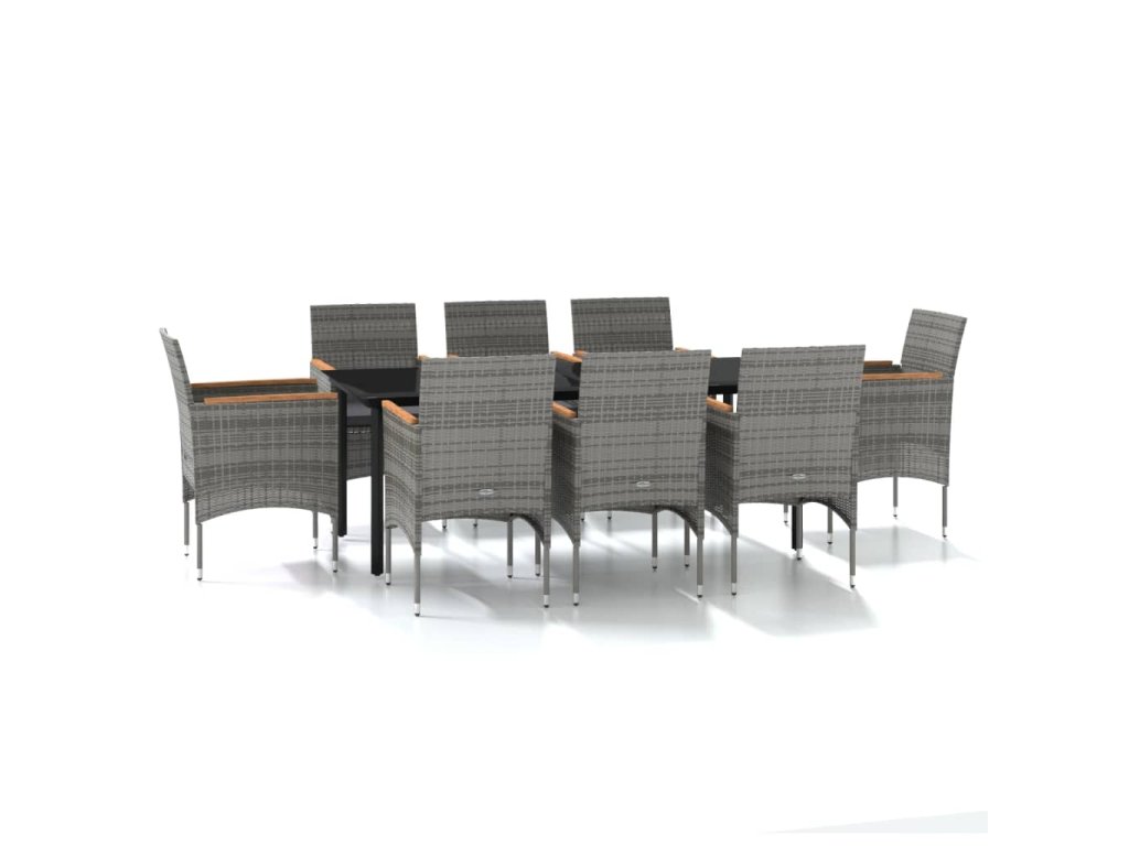 9dílný zahradní jídelní set s poduškami šedočerný 3099340