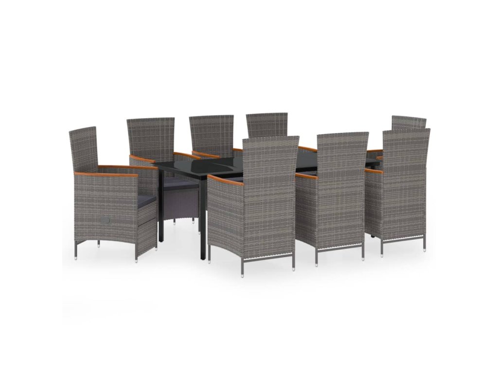 9dílný zahradní jídelní set s poduškami šedý 3099464