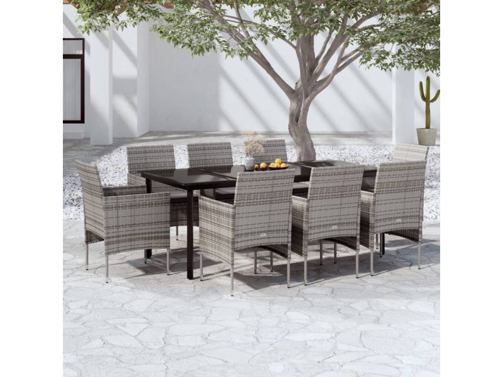 9dílný zahradní jídelní set s poduškami šedý a černý 3099292