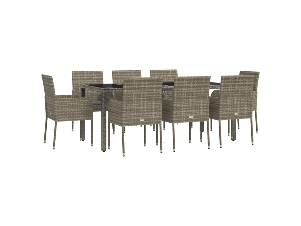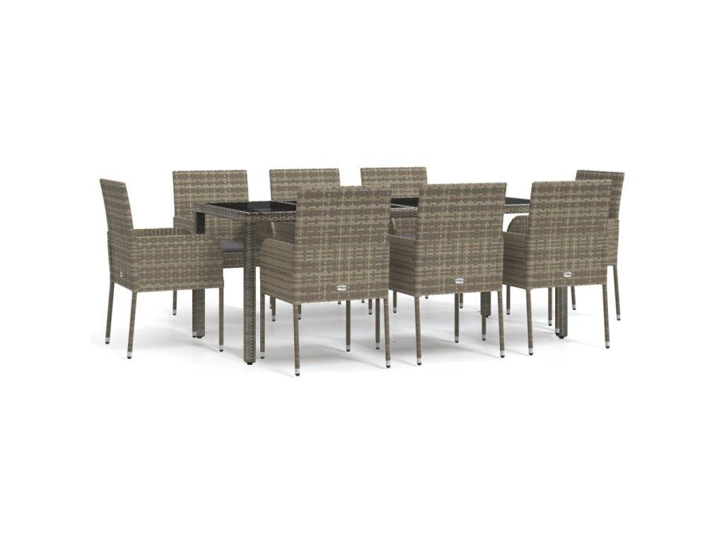 9dílný zahradní jídelní set s poduškami šedý polyratan 3185010