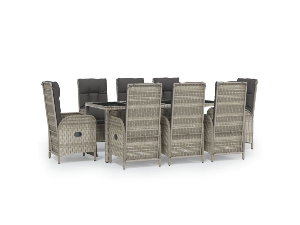 9dílný zahradní jídelní set s poduškami šedý polyratan 3185037