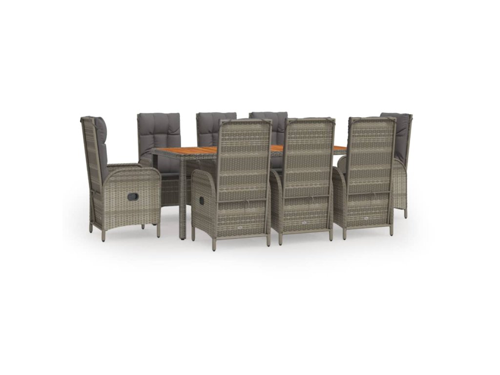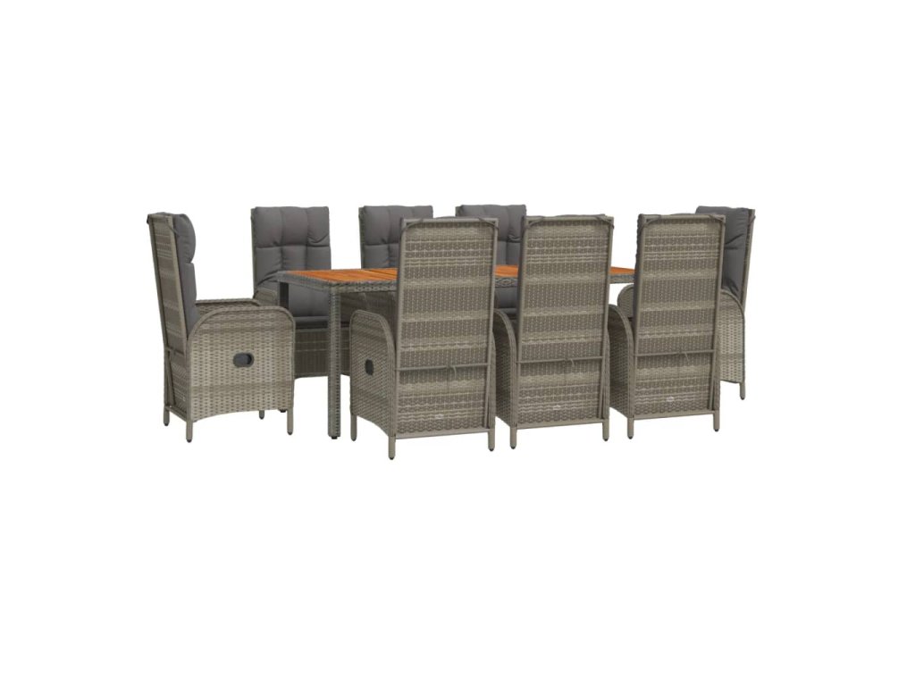 9dílný zahradní jídelní set s poduškami šedý polyratan 3185043