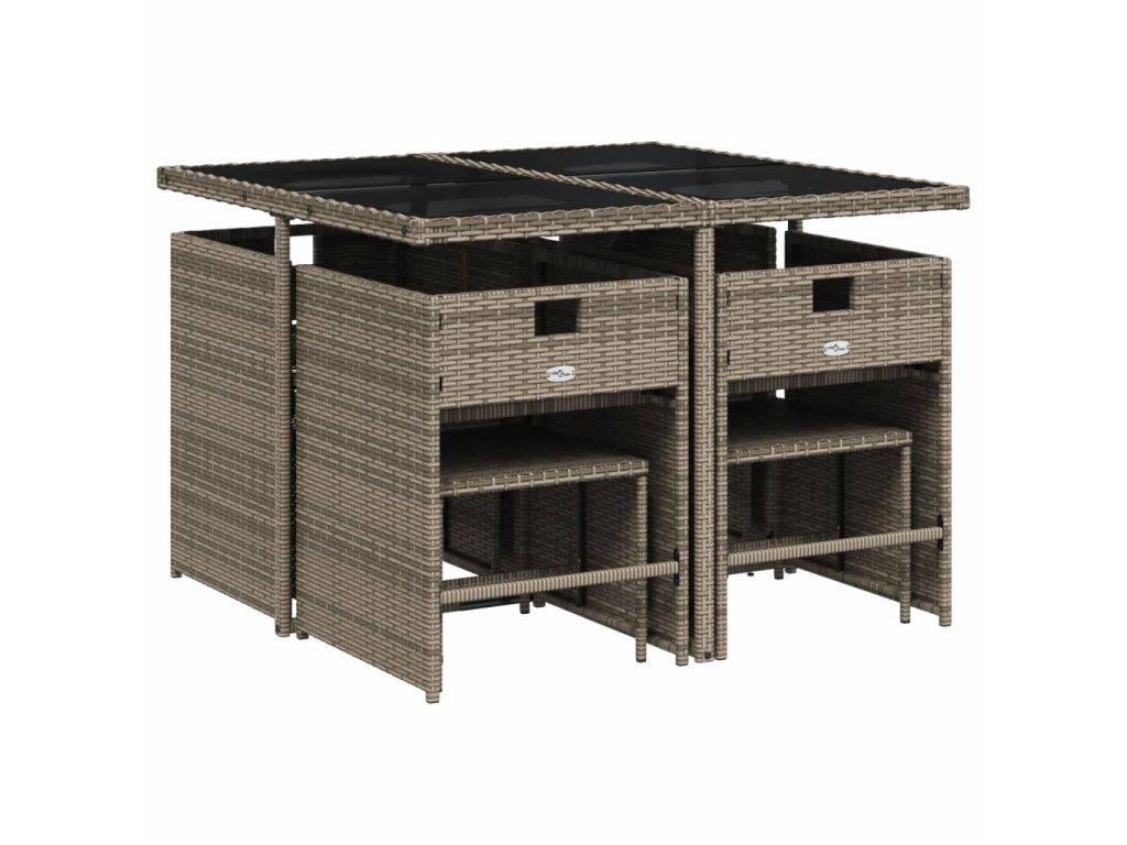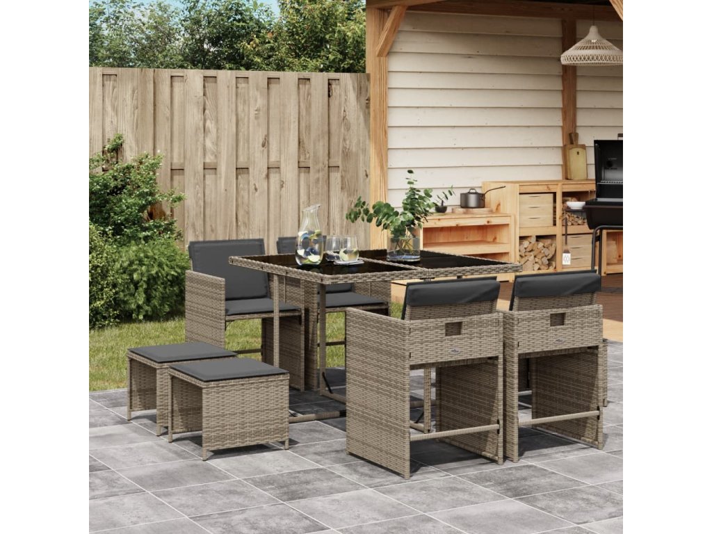 9dílný zahradní jídelní set s poduškami šedý polyratan 3211136