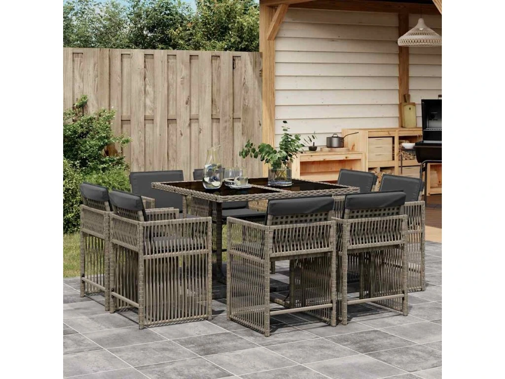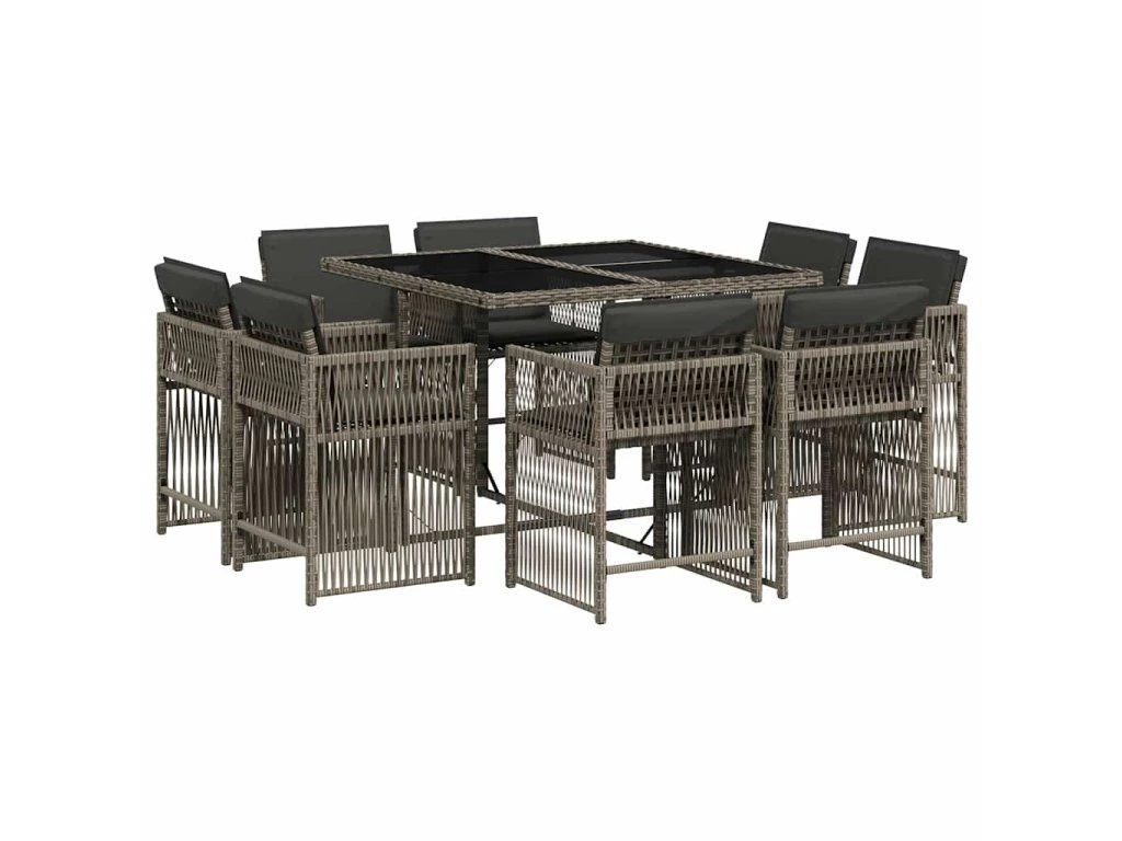 9dílný zahradní jídelní set s poduškami šedý polyratan 3211736