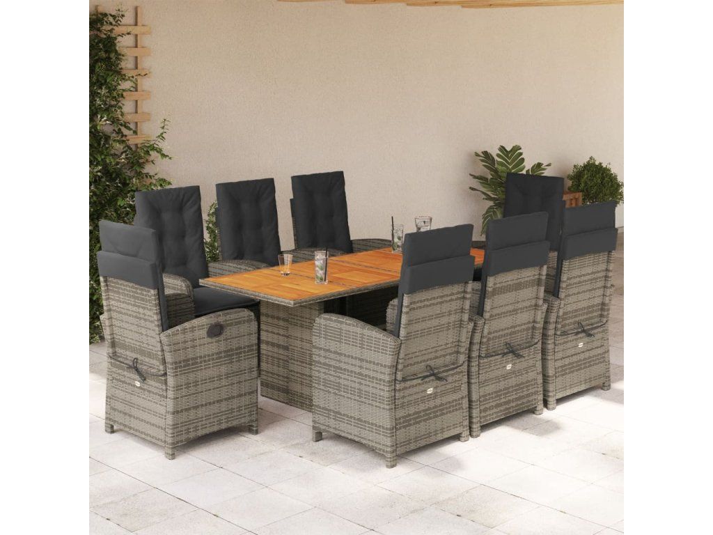 9dílný zahradní jídelní set s poduškami šedý polyratan 3212279