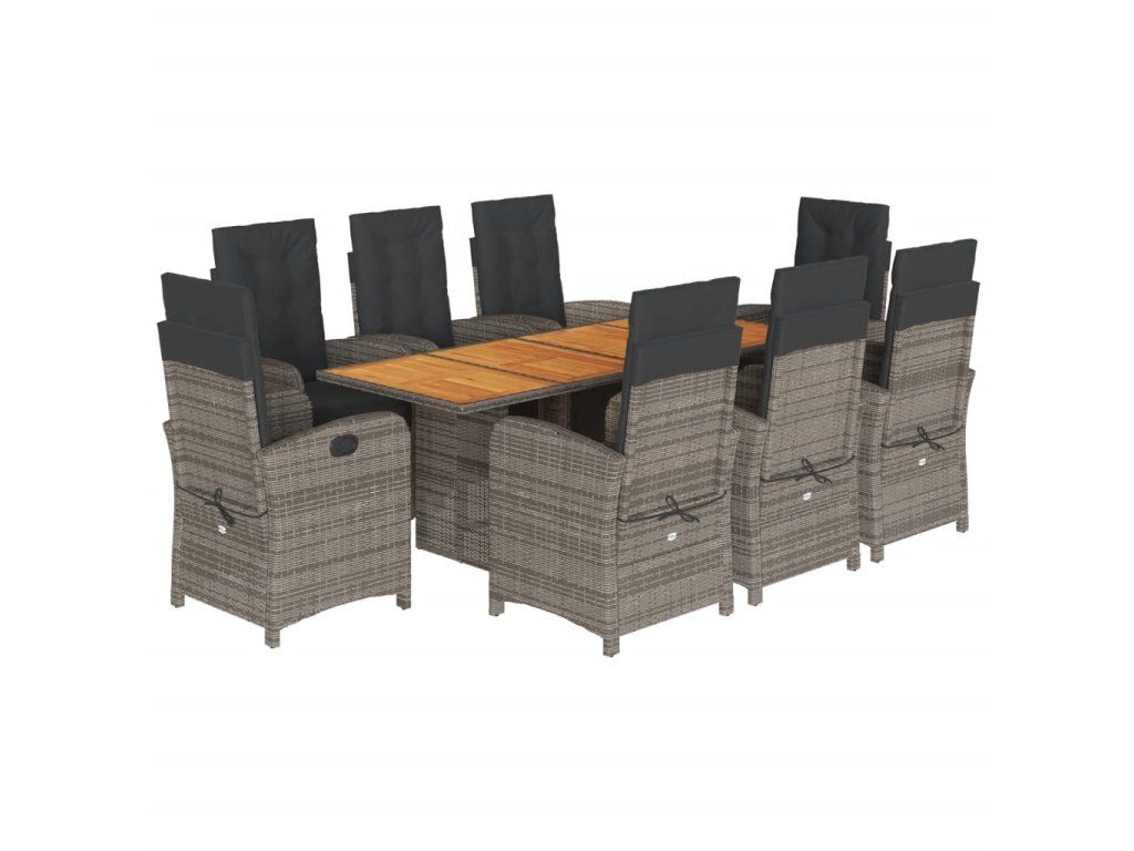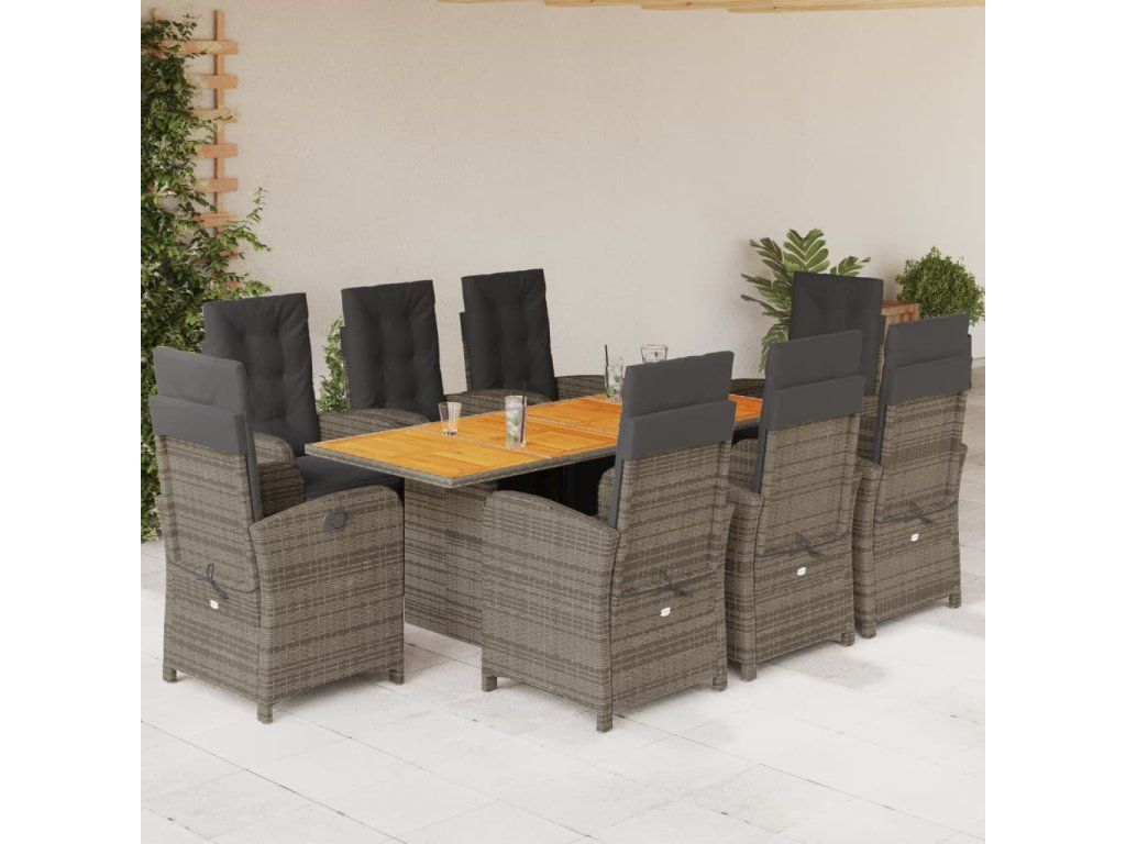 9dílný zahradní jídelní set s poduškami šedý polyratan 3212507