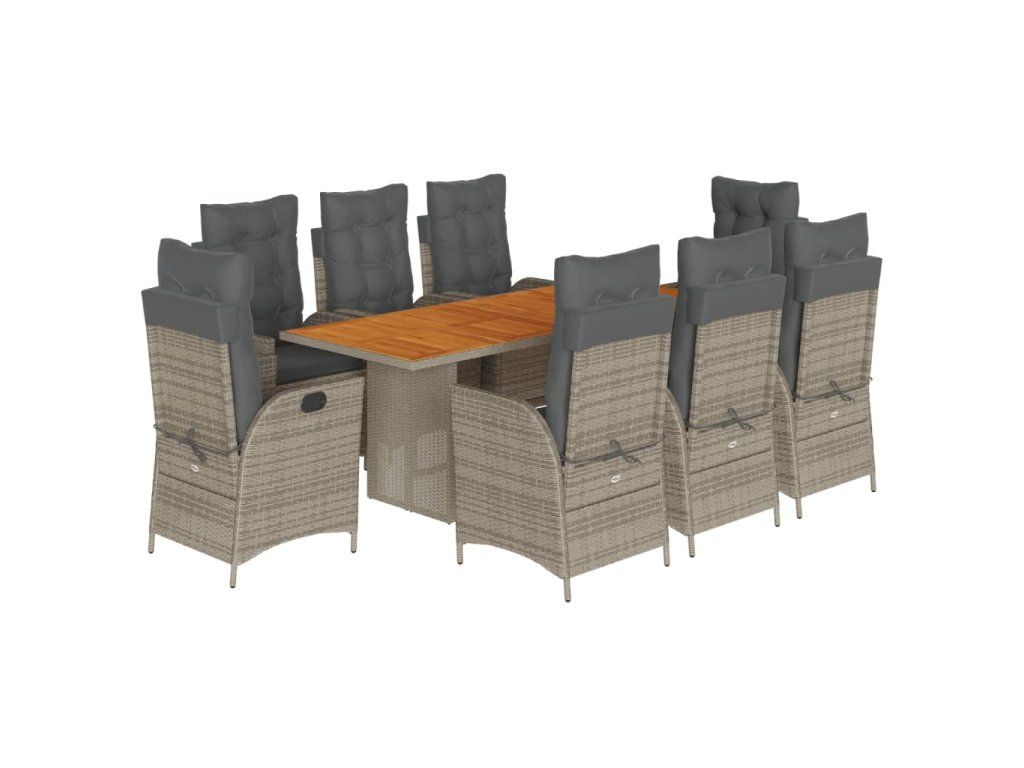 9dílný zahradní jídelní set s poduškami šedý polyratan 3213143