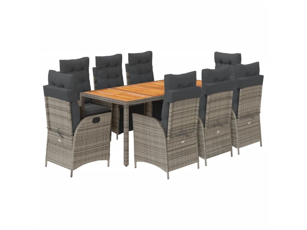 9dílný zahradní jídelní set s poduškami šedý polyratan 3213349