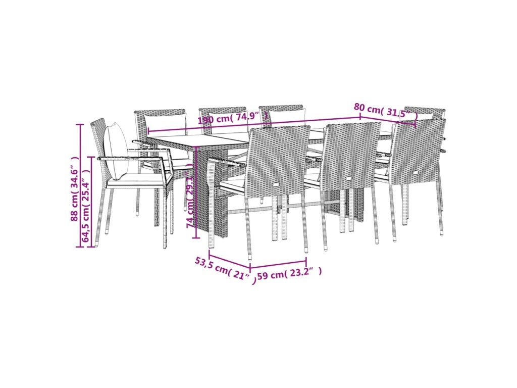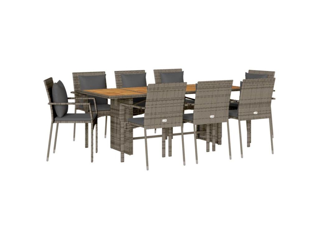 9dílný zahradní jídelní set s poduškami šedý polyratan 3213501