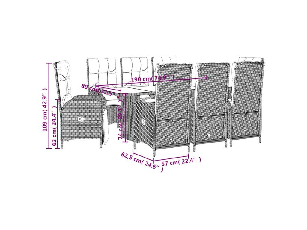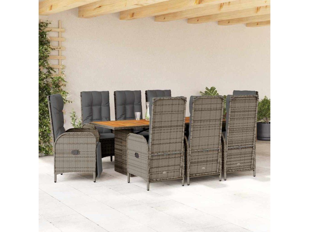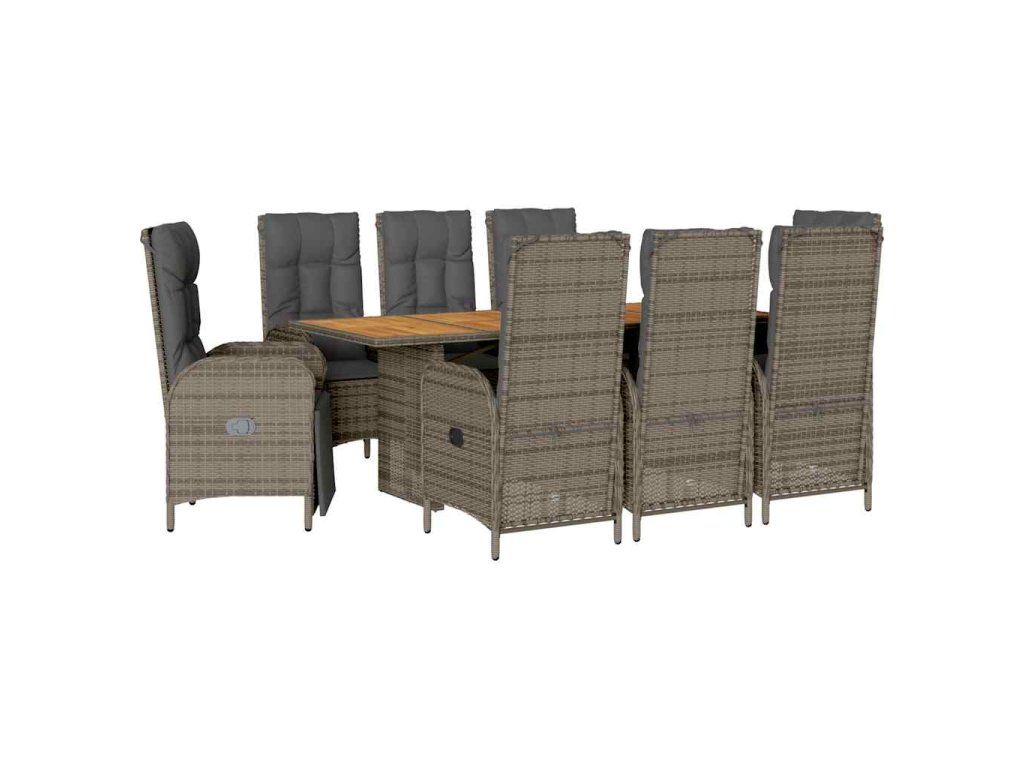 9dílný zahradní jídelní set s poduškami šedý polyratan 3213519