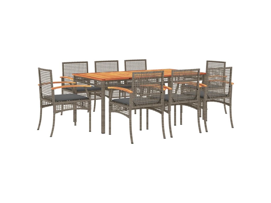 9dílný zahradní jídelní set s poduškami šedý polyratan 3213574