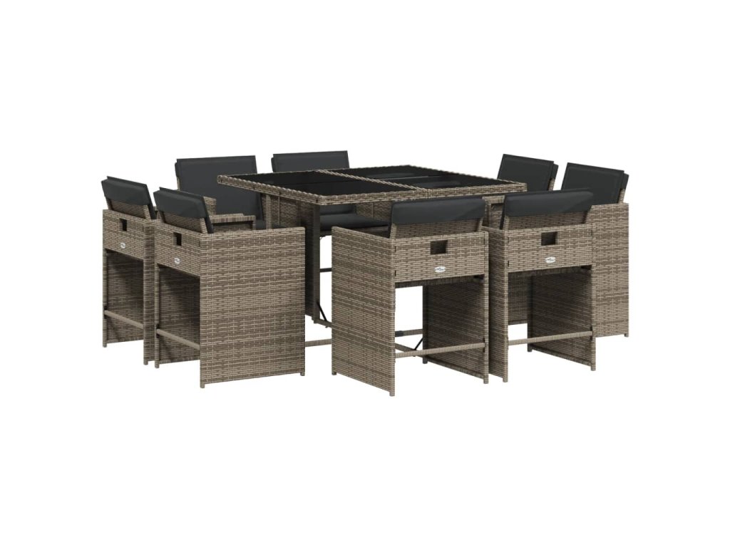 9dílný zahradní jídelní set s poduškami šedý polyratan 3277963