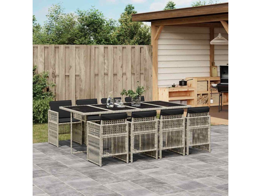 9dílný zahradní jídelní set s poduškami světle šedý polyratan 3210923