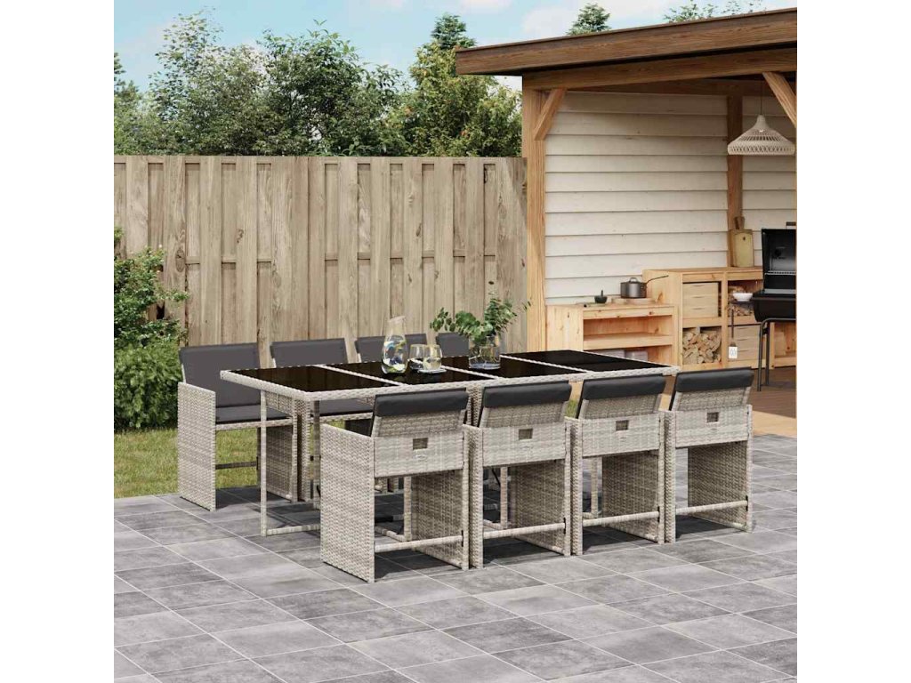 9dílný zahradní jídelní set s poduškami světle šedý polyratan 3211103